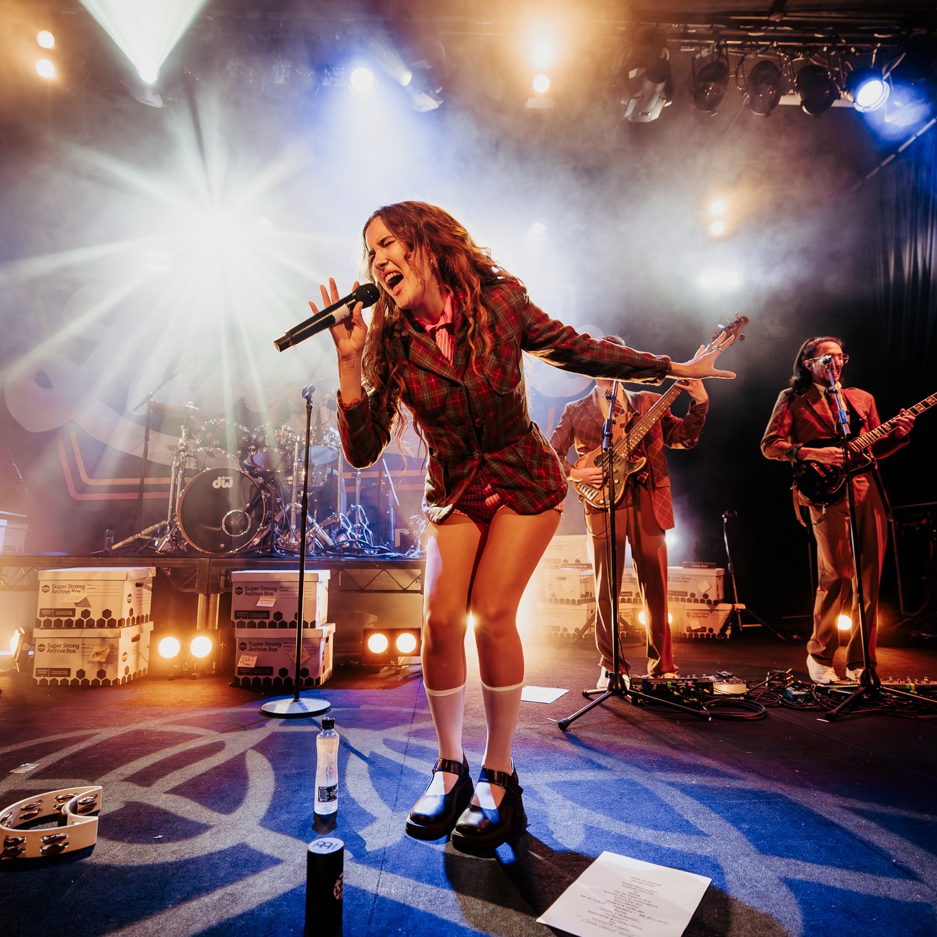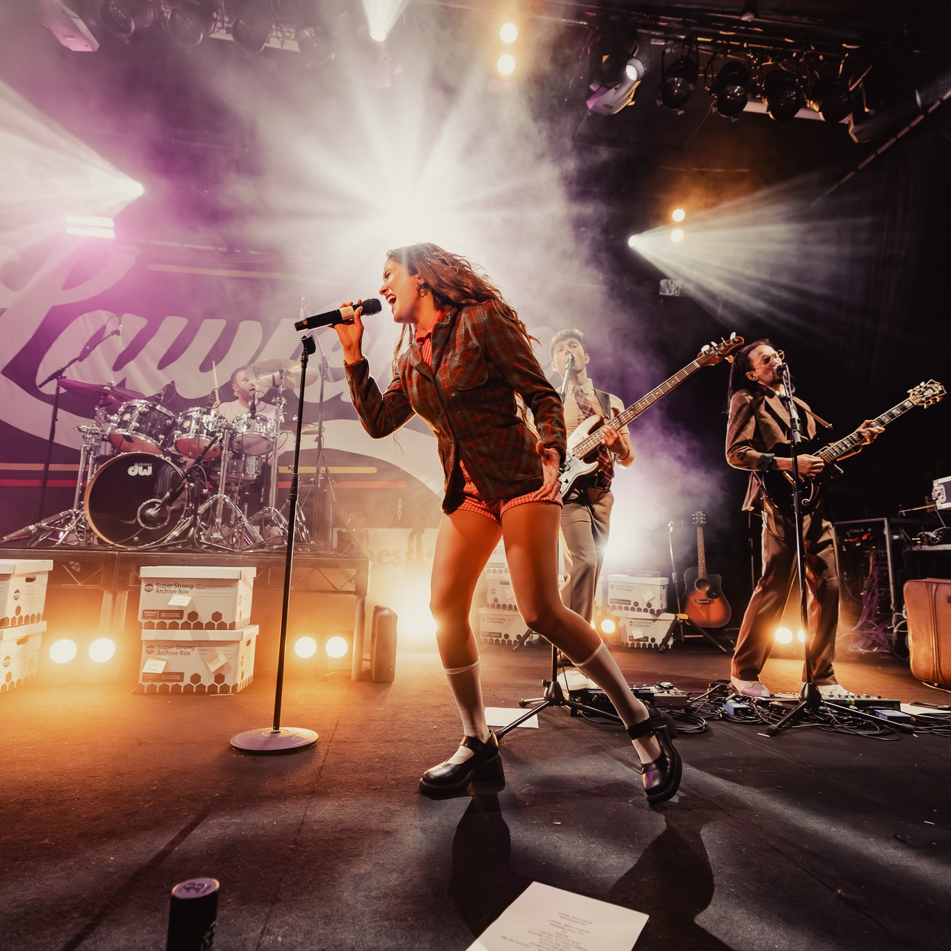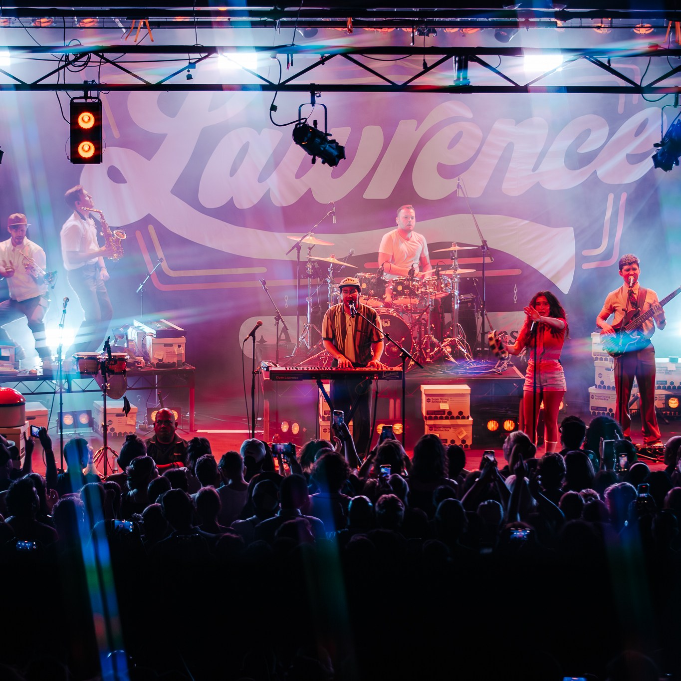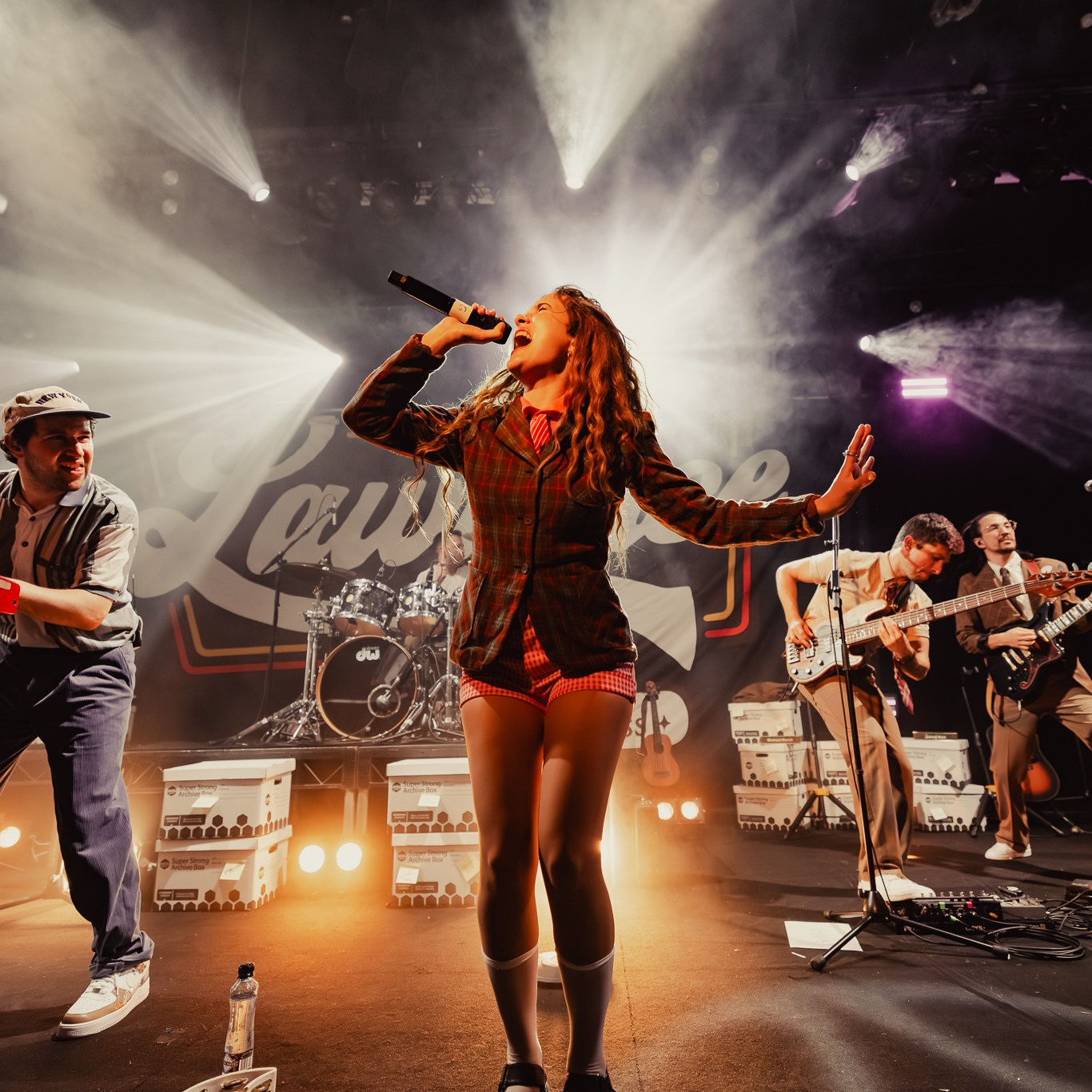 Dubbed “The Family Business Tour” in lieu of their fourth studio album released last year, they immediately brought you into that world with paper boxes and props like landline phone’s and desk name placards left across the stage. Opening with the title track, it felt like a big bang had gone off with the palpable energy that erupted with lead singer Gracie Lawrence’s jaw dropping vocals and the unmissable brass section. Early highlights in the set included “i’m confident that i’m insecure” which just has these incredible heights it reaches vocally and melodically, the fan voted “False Alarms”, and “Guy I Used To Be” which is one of Clyde Lawrence’s strongest moments.