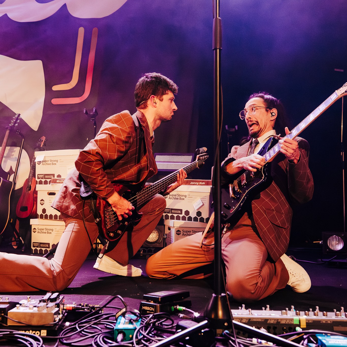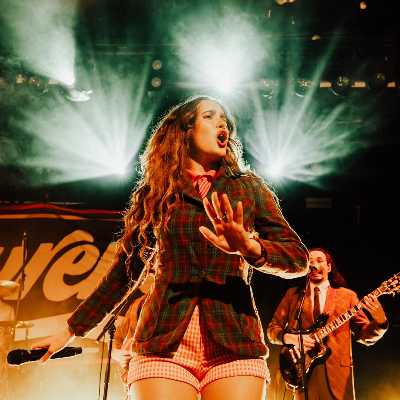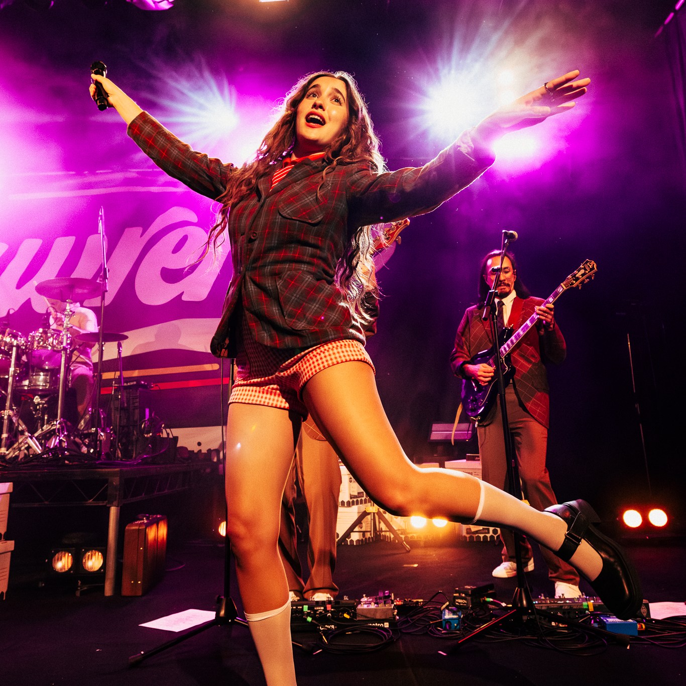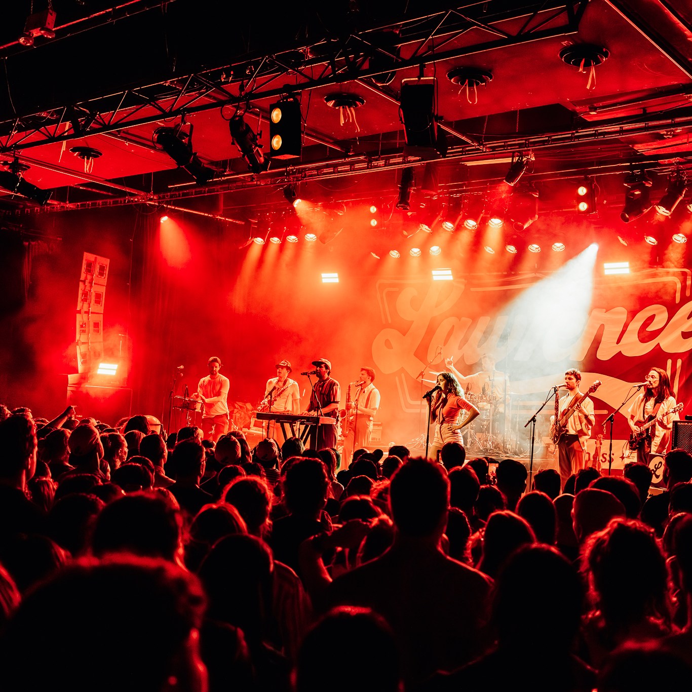 Dubbed “The Family Business Tour” in lieu of their fourth studio album released last year, they immediately brought you into that world with paper boxes and props like landline phone’s and desk name placards left across the stage. Opening with the title track, it felt like a big bang had gone off with the palpable energy that erupted with lead singer Gracie Lawrence’s jaw dropping vocals and the unmissable brass section. Early highlights in the set included “i’m confident that i’m insecure” which just has these incredible heights it reaches vocally and melodically, the fan voted “False Alarms”, and “Guy I Used To Be” which is one of Clyde Lawrence’s strongest moments.
